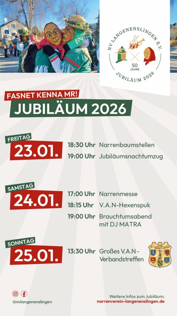 VAN Freundschaftstreffen beim Narrenverein Hochberg 50 Jahre Narrenverein Langenenslingen mit VAN Verbandstreffen >> Hier geht´s zum Vorbericht << Der VAN war in Berlin –> hier geht´s zum Bericht!
